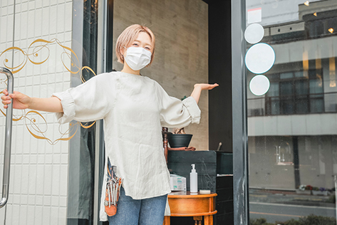 お客様をお迎えし、笑顔でお声かけをしていきます。緊張していらっしゃる様子のお客様には、まずは雑談からスタート!和やかな空気を作りつつ理想のスタイルや髪に関する悩みを聞いていきます。